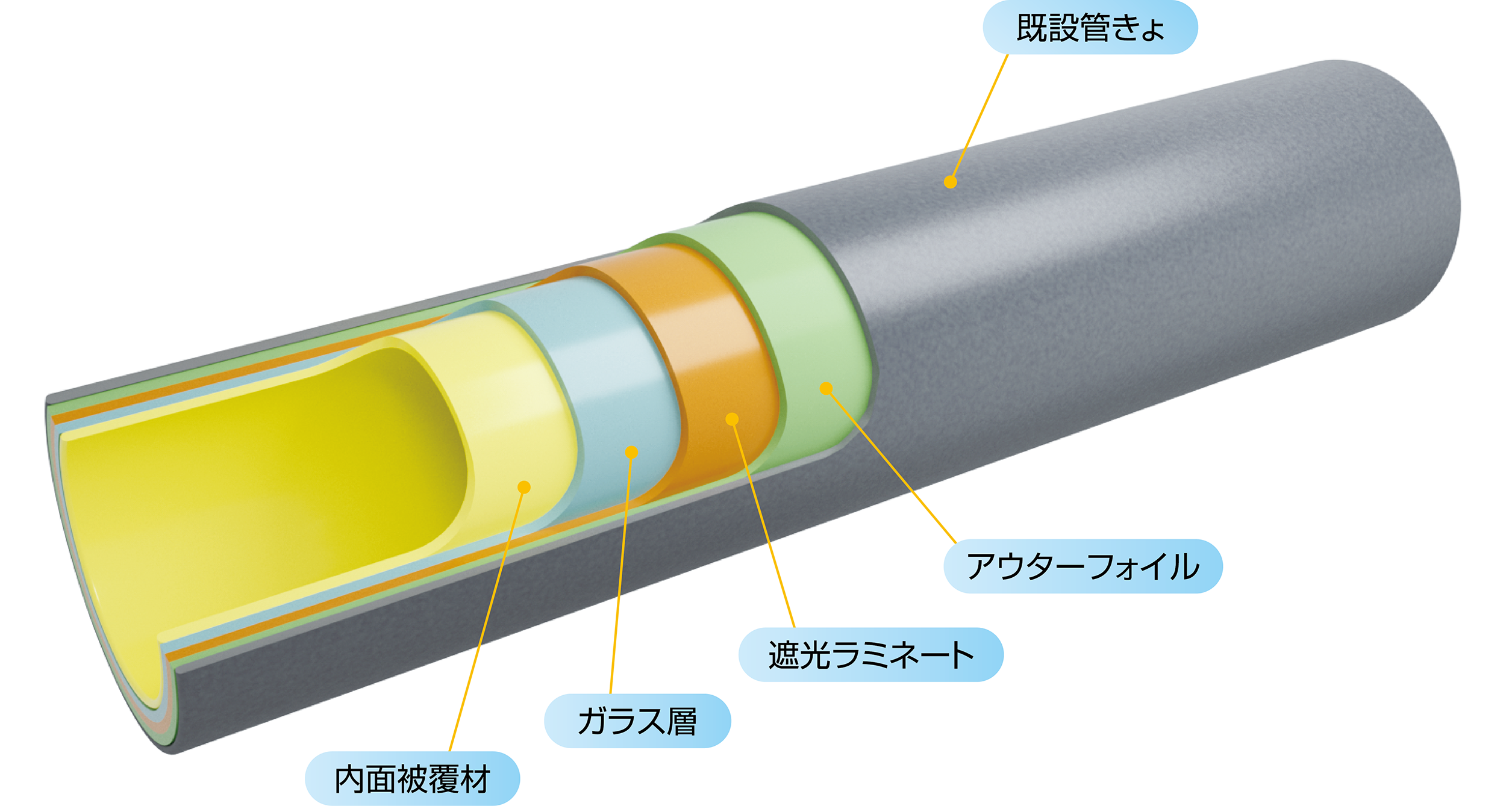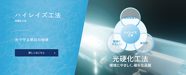 | 製品紹介 | 管更生工法は、老朽化した下水道管の内側よりリニューアルすることで、既設管を撤去する必要がないため廃棄物の大幅な削減が可能です。掘削や埋め戻しに伴う重機の使用がないことから、CO₂排出量の削減にも貢献します。また、騒音や振動、粉塵の発生が少なく、人と環境にやさしい工法です。 その中でも、ハイレイズ工法は短時間での施工が可能なため、交通規制などのインフラへの影響を最小限に抑えることができ、地域の生活環境を守ります。さらに蒸気を使用せず、光で硬化することにより、エネルギー消費を抑え環境負荷を低減します。私たちは確かな技術と環境配慮を両立させた 「ハイレイズ工法」を通じて、持続可能な下水道インフラの維持・再生への貢献を目指しています。 |