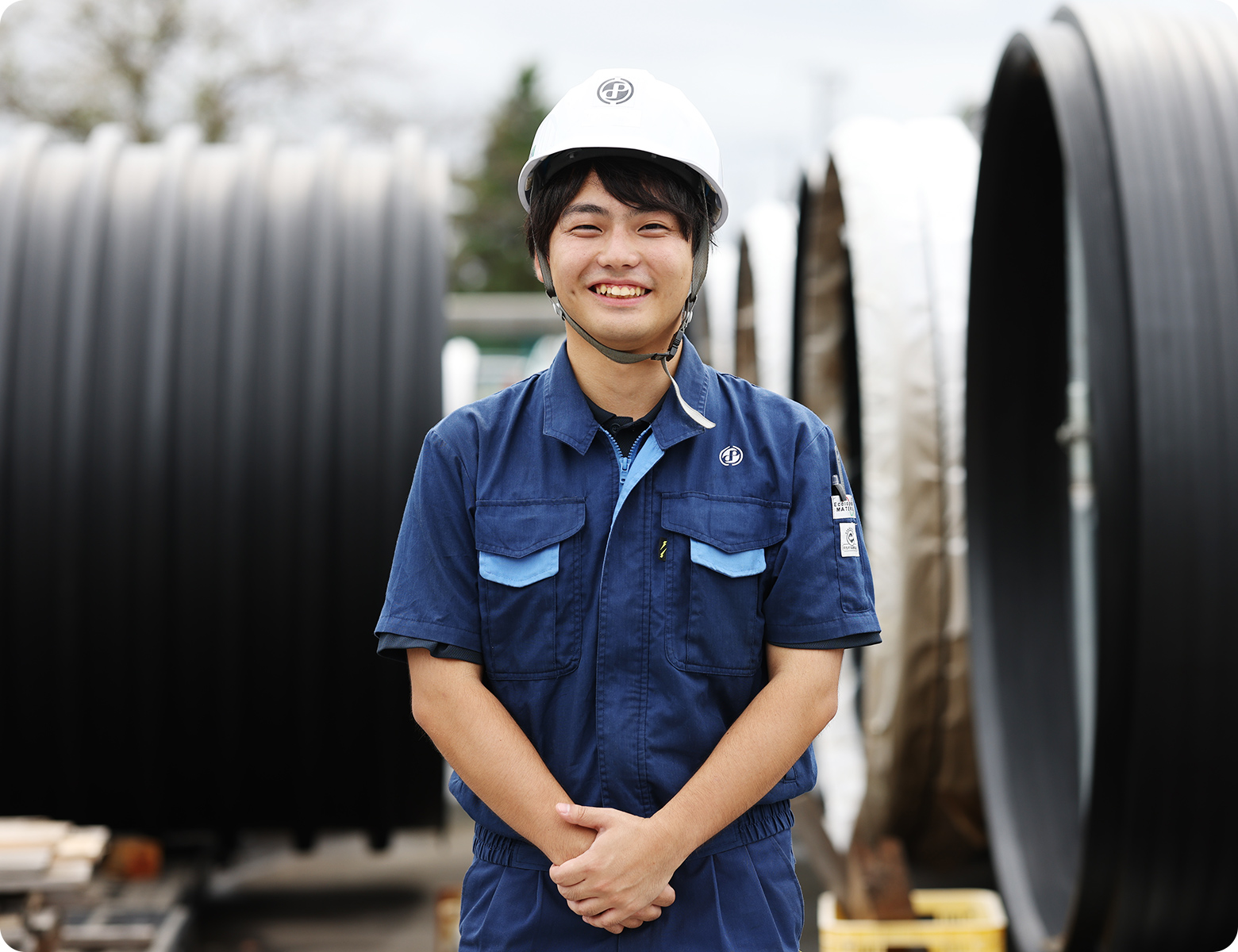 当社は、2021年にタキロンシーアイグループ内の事業会社が統合して新しくスタートした企業です。それにともなって製造部門も拡大し、まだ統一されたルールが社内で整備されていないのが実情です。ハウエル管を効率的に製造していくためには、各工程でどのような手順を踏むのかベストなのか、そのマニュアルの作成も私がリードして進めるように上司から託されました。いま、工場の現場で実際に検証しながらマニュアル作りを進めていますが、こうした重大な仕事を入社数年の私に任せてくれるのも当社ならではだと思います。特に製造部は40代50代のベテランの方が中心で、次代を担う若手への期待が大きく、私が提案した意見を積極的に採用してくれるので、とてもやりがいを感じています。将来は、製造だけではなく設計や開発も経験して自分の幅を広げ、「ハウエル管のことならT.I.に任せておけばいい」と全面的に信頼されるような、そんな人材になりたいと思っています。